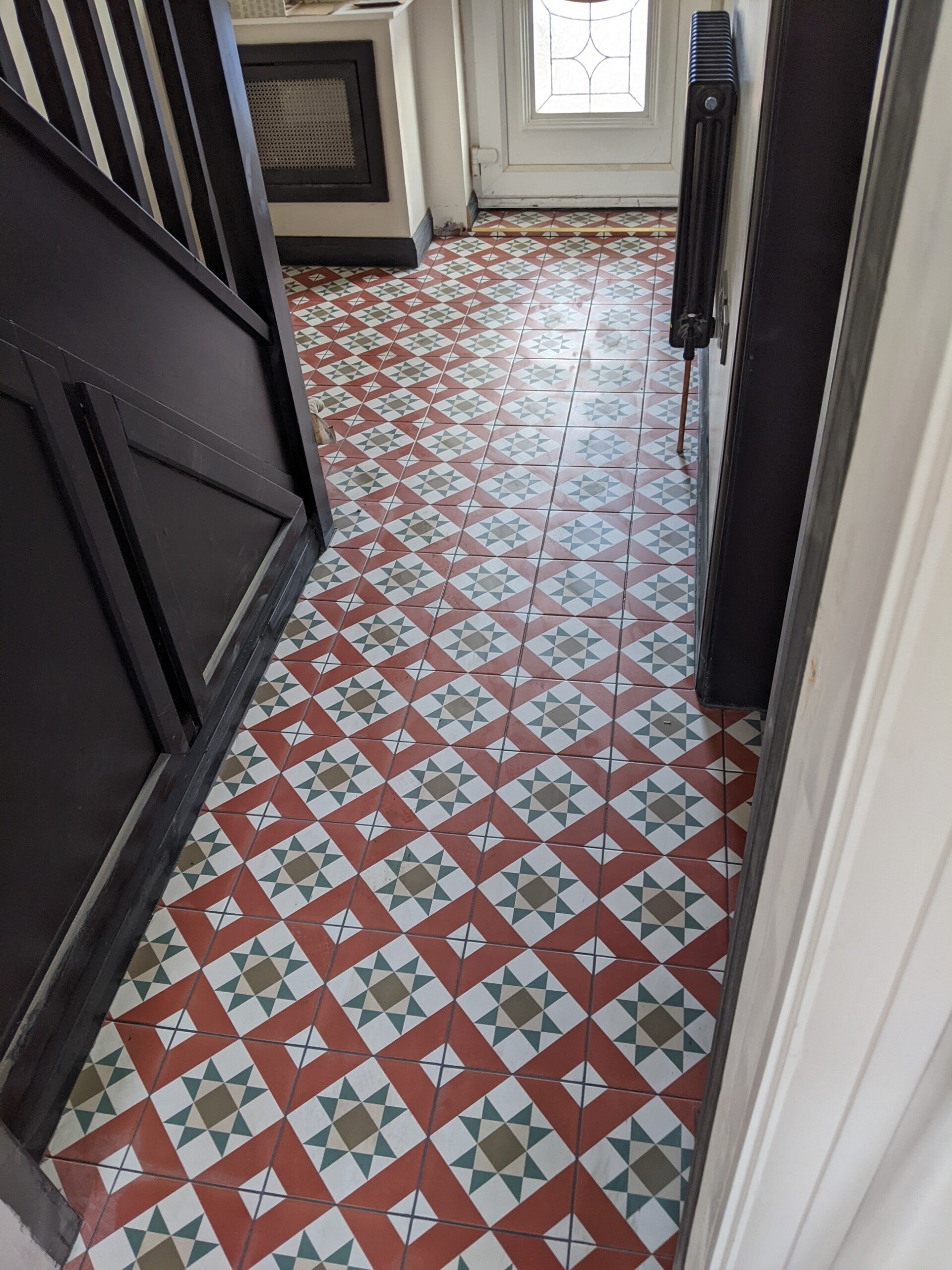Peter has done a brilliant job at tiling our bathroom.He took real care to carefully plan out the tiling due to us having patterned tiles.The finish looks brilliant